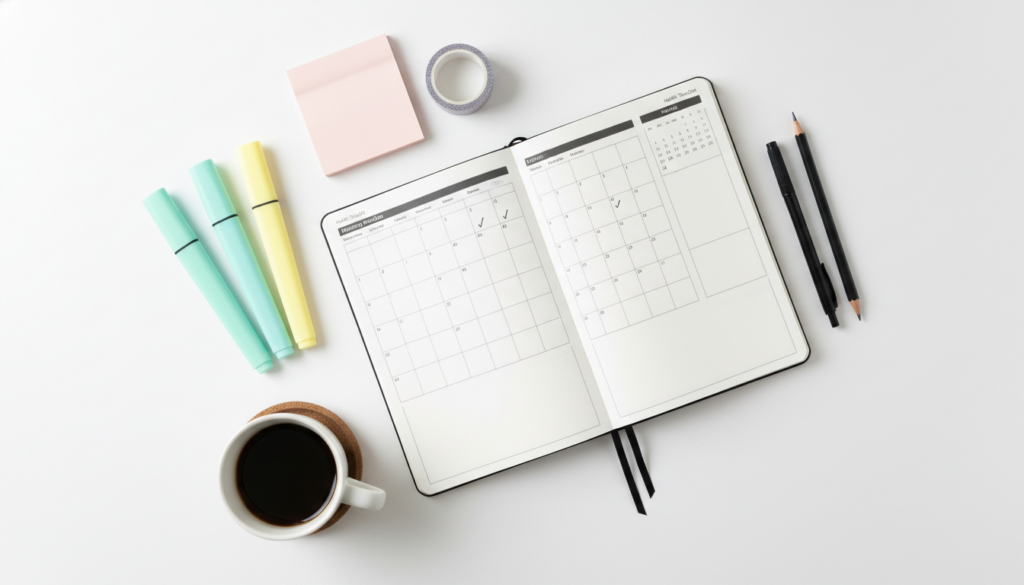 Instead of a long checklist, create 2–3 key habits for each part of the day: